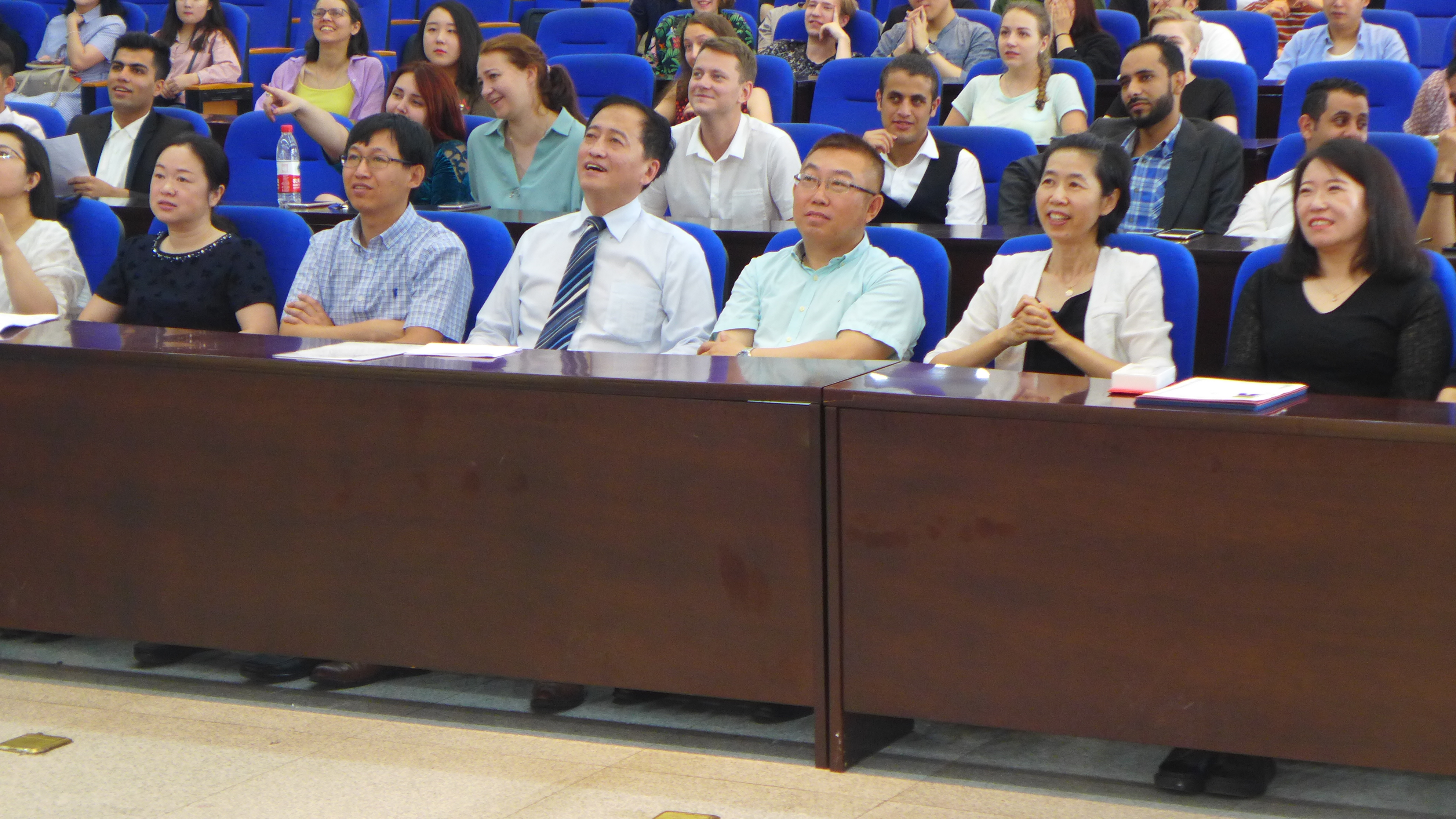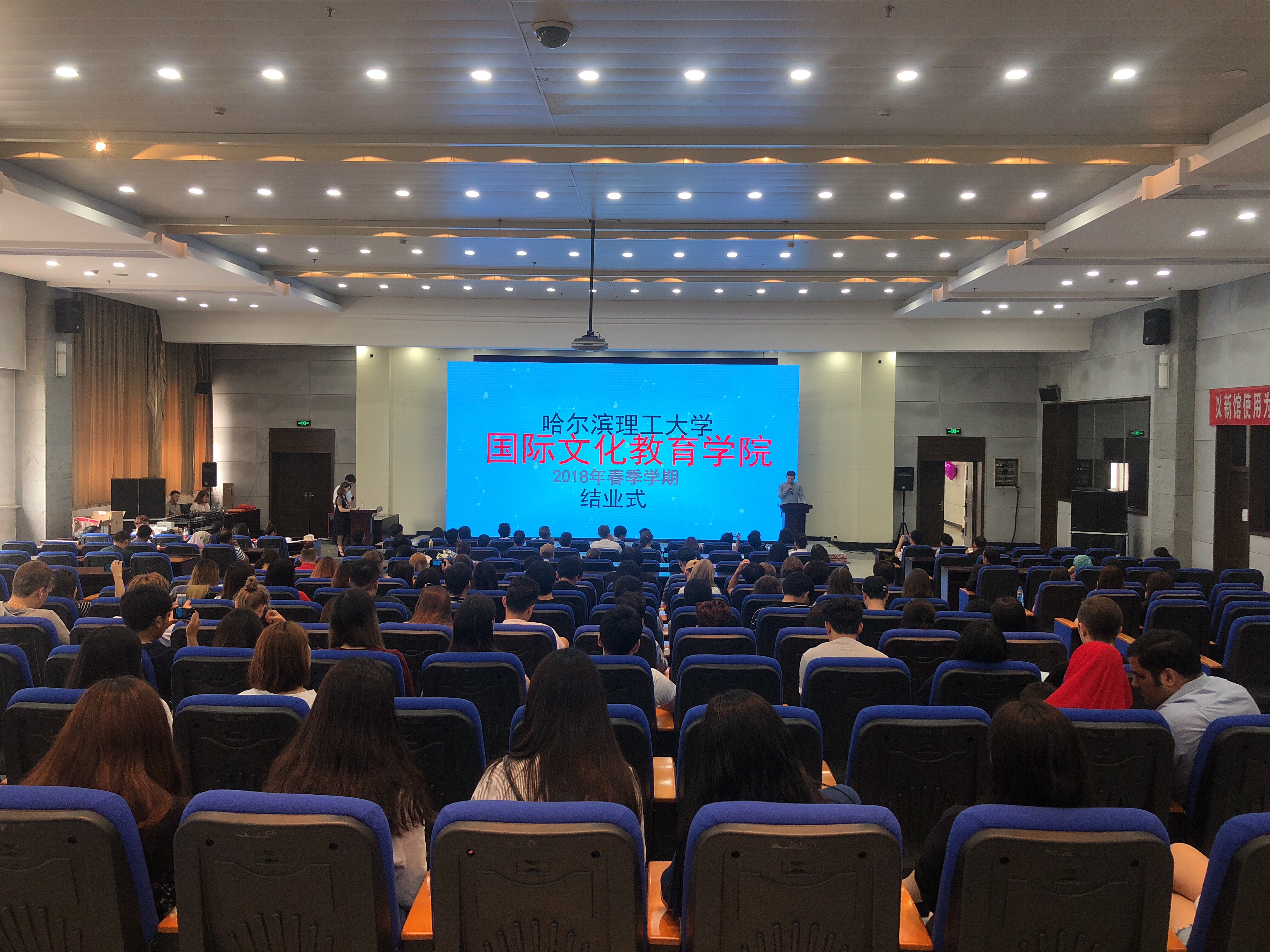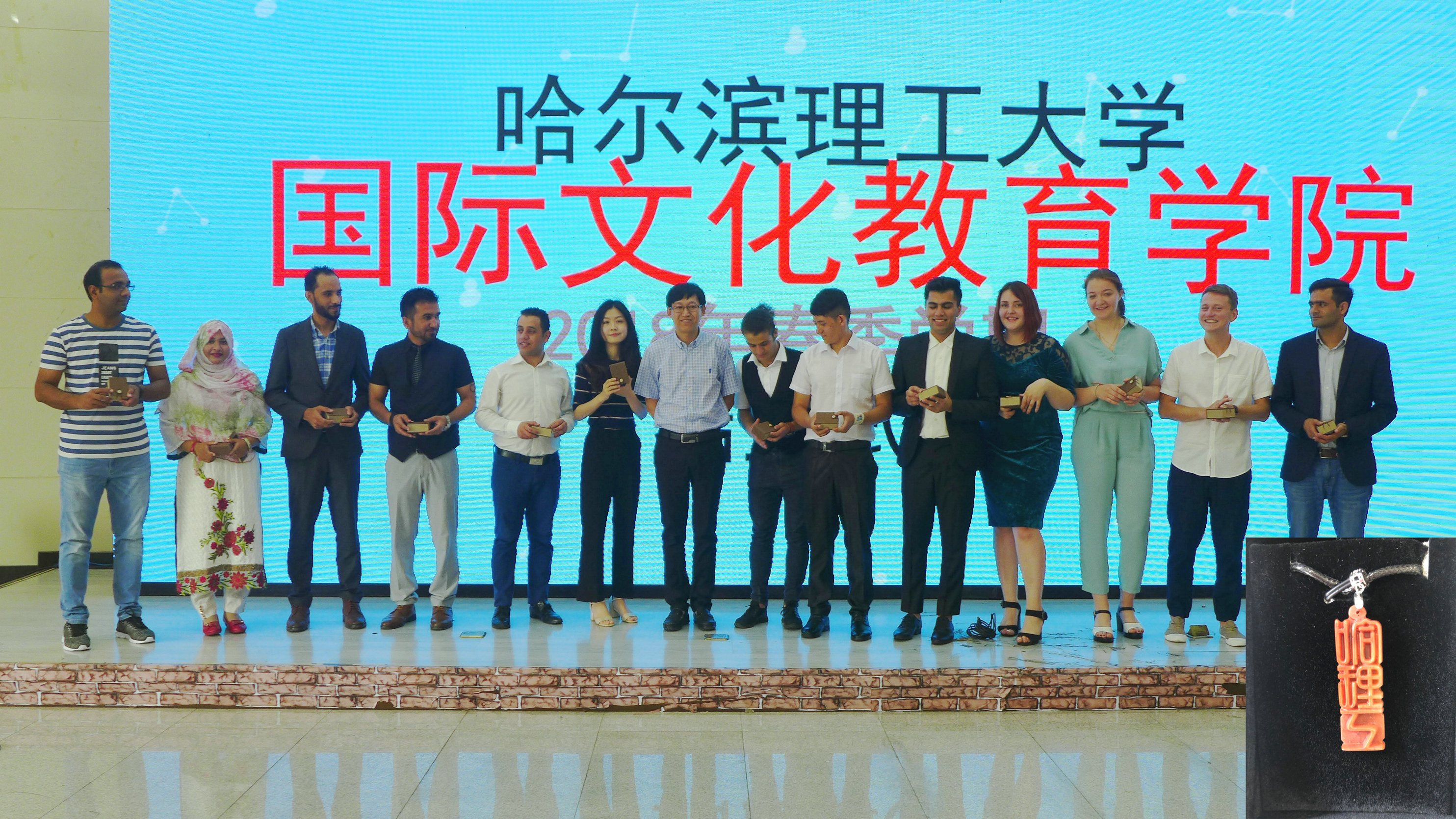结业式上师生们一起回顾了一个学期的精彩瞬间。一张张多姿多彩的照片将大家带回到了那愉快充实的每一天,留学生看到自己的形象出现在大屏幕上,不由得会心一笑。学院为14级汉语国际教育本科班的毕业生们精心制作了一部微电影。短短的10分钟视频,讲述了他们从初到哈尔滨的激动喜悦,到成长为优秀毕业生的收获满满。四年时间里,大家共同成长,一同在教室里学习汉语,一起在旅途中欣赏中国美景、体验中华文化。因为哈尔滨理工大学,大家拥有了一段特殊的、美好的留学时光;同时,因为有了留学生们,哈尔滨理工大学的校园里又增添了许多美丽而矫健的身影。