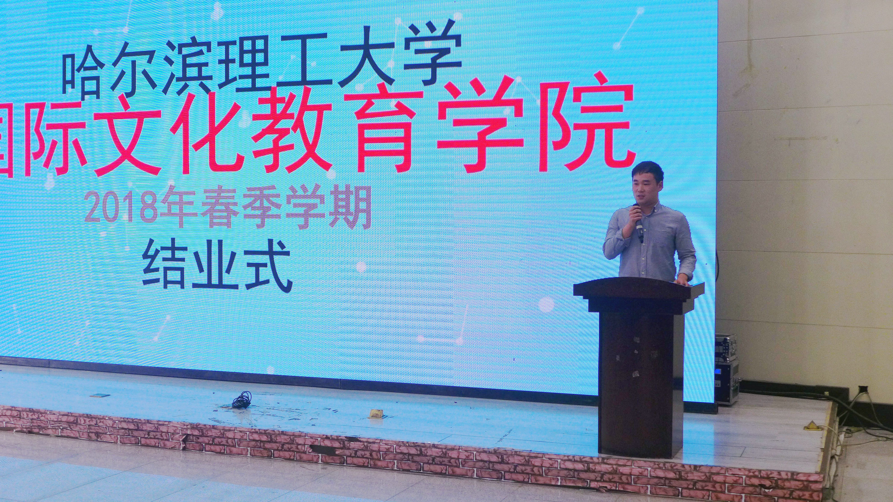 教师代表宋文玉向毕业生献上了衷心的祝贺和真诚的祝福。中级B班的文先昱同学代表结业留学生发言,他说:“我们在中国选择了哈尔滨这个地方,选择了在哈尔滨理工大学学习,事实印证我们的选择是正确的。我们马上要回到各自的国家了,在以后的人生路上我们可能或多或少都会遇到困难,经历挫折,但是我们在理工大学积蓄了一种力量。那就是‘留学理工 实现梦想’。”