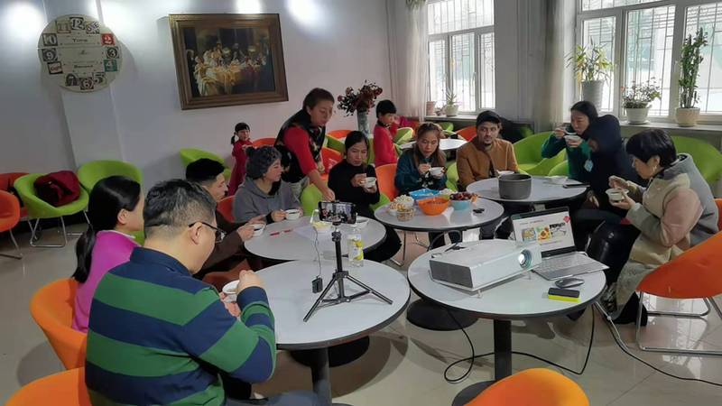 外国语学院院领导们陪留学生们一起品尝八宝粥