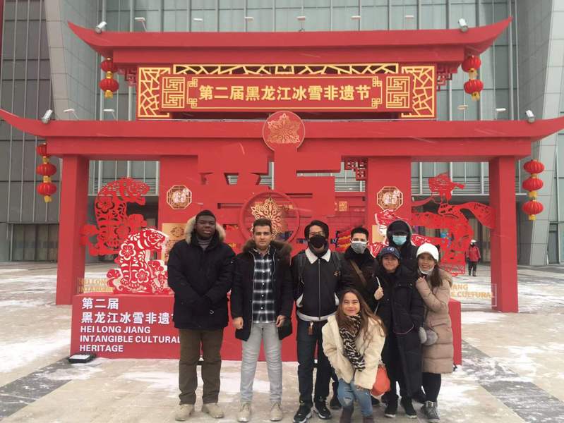 1月15日,为丰富寒假生活,外国语学院组织留学生们参观了第二届龙江冰雪非遗节,与中国民间艺人一同体验了剪纸、焗瓷和中医,品尝本地曲子酒、熏鳇鱼,观看了望奎皮影和二人转,借民俗展示,走进中国文化。